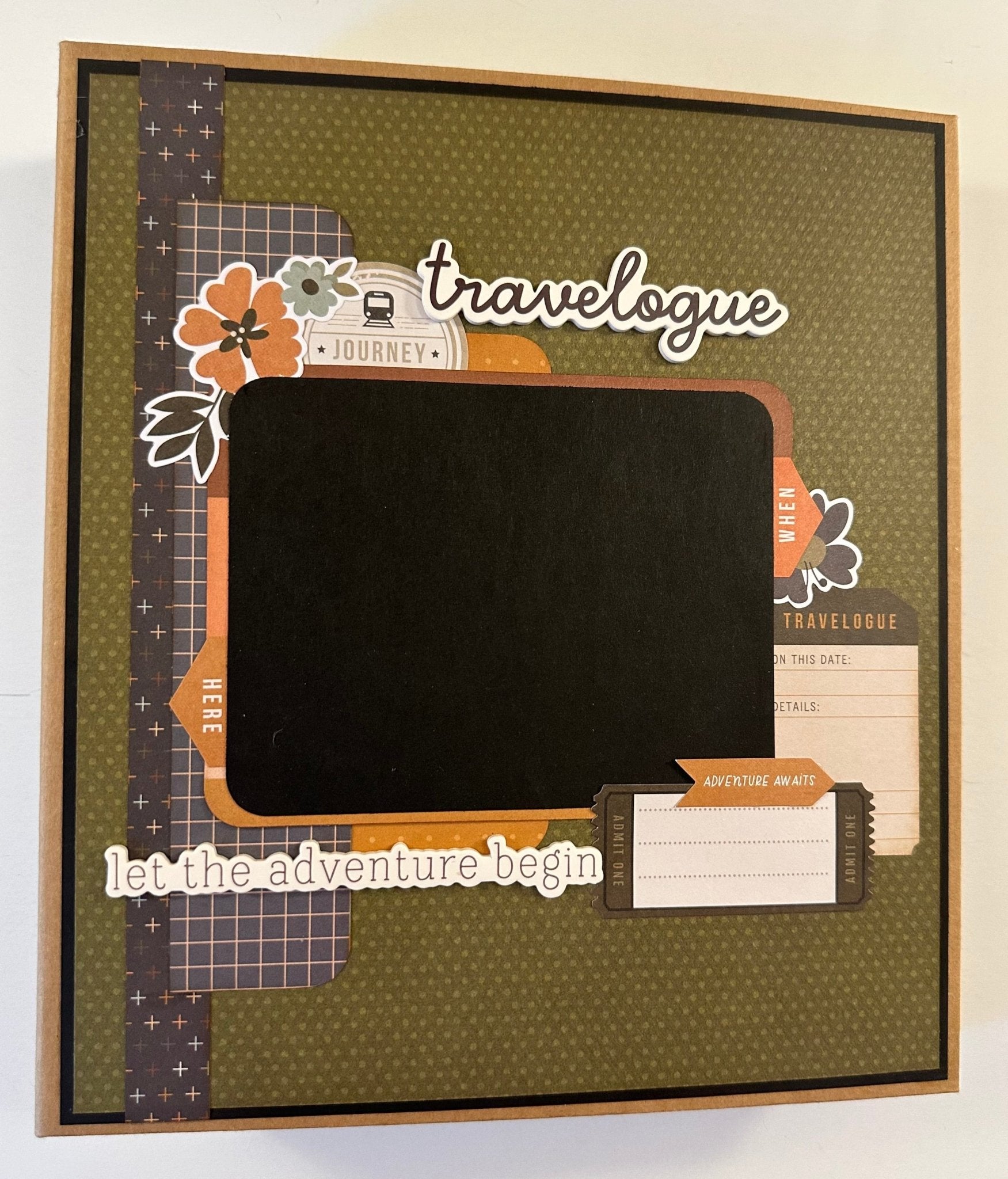 Here is my Let's Travel folio album that measures 9 1/4 x 10 1/2 with a 2 inch spine, and lots of room for your photos!